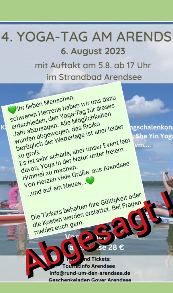 - „5. Yoga-Tag am Arendsee“ am Sonntag den 04. August 2024 (Programm)