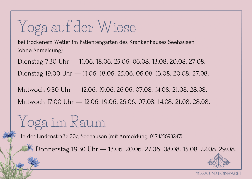 - „Yoga auf der Wiese“ vom 11.06.24 bis 29.08.24